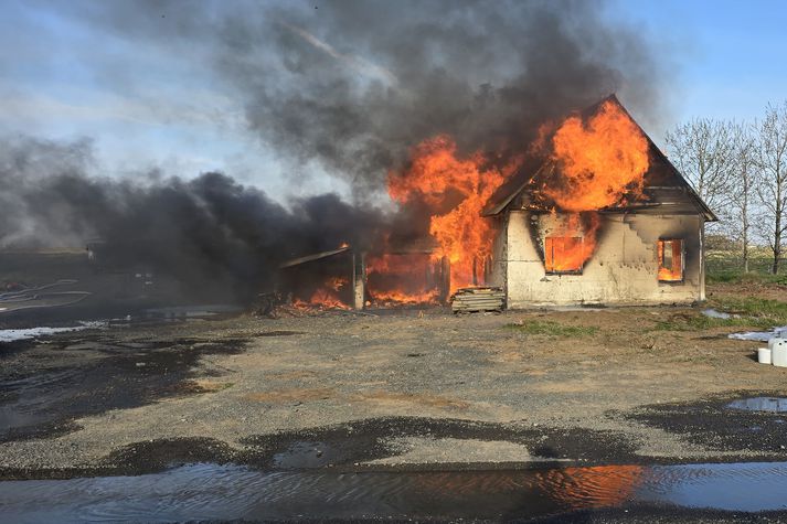 Fréttastofu bárust tilkynningar frá vegfarendum um alelda hús og þykkan svartan reyk sunnan við Selfoss á áttunda tímanum í gær. Lárus Kristinn Guðmundsson varaslökkviliðsstjóri hjá Brunavörnum Ánessýslu segir í samtali við fréttastofu að um æfingu sé að ræða. Kveikt hafi verið í gömlu húsi og slökkviliðsmenn berjist nú við eldinn.