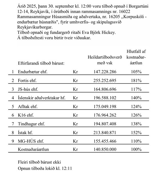 Home Fréttir Í fréttum Opnun útboðs: Korpuskóli – endurbætur húsnæðis