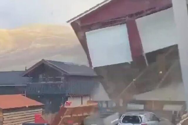 „Ég hef aldrei upplifað nokkuð þessu líkt,“ sagði Helga Marie Sesaker við norska ríkisútvarpið NRK sem varð ekki um sel þegar bílskúr nágranna hennar tókst á loft í veðurhamnum í Oppdal en það var fyrrnefndur Skagen sem náði myndskeiði á síma sinn af skúrnum á flugi.