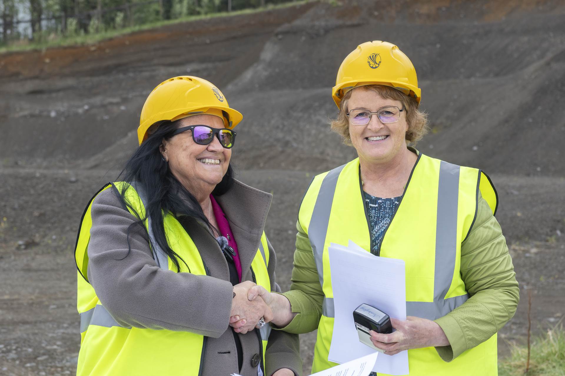 Inga Sæland, félags- og húsnæðismálaráðherra, og Katrín Sigurjónsdóttir, sveitarstjóri í Norðurþingi, við undirritun samningsins á Húsavík í vor. Mynd: Gaukur Hjartarson