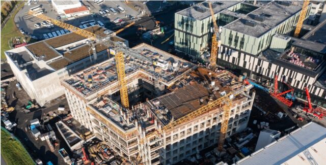 Framkvæmdir við nýtt rannsóknahús hafa gengið vel að undanförnu og mikilvægir áfangar fram undan. Nú er aðallega steypt á efstu hæð byggingarinnar, þar sem síðustu þakplöturnar eru í vinnslu. Samhliða annarri vinnu er unnið að uppsetningu stálvirkja víða um húsið.