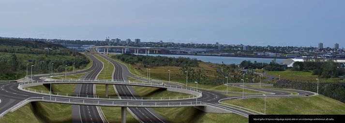 Tenging við Grafarvogshverfið er sýnd með hringtorgi á svæði gömlu öskuhauganna í Gufunesi.