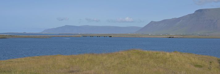 Eitt sjónarhornið í matsskýrslunni er frá bílastæðinu við Esjurætur. Þar sjáum við betur grjótgarðinn og brúaropið í miðju þegar horft er út Kollafjörð.