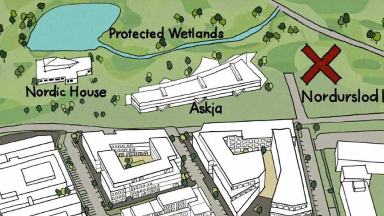Hann talar þarna um byggingu sem til stendur að reisa í Vatnsmýrinni við hlið náttúrufræðihússins Öskju, gegnt höfuðstöðvum Íslenskrar erfðagreiningar og hugmyndahúsinu Grósku.