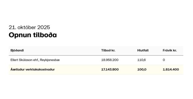Tilboði skal skila rafrænt í TendSign útboðskerfinu fyrir kl. 14:00 þriðjudaginn 21. október 2025.
