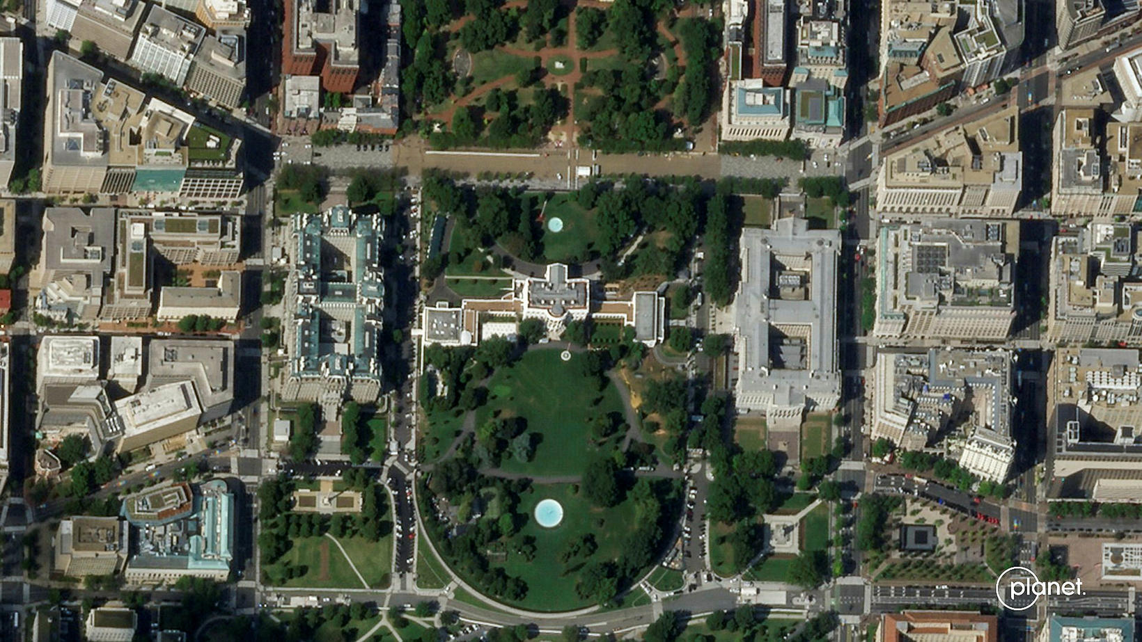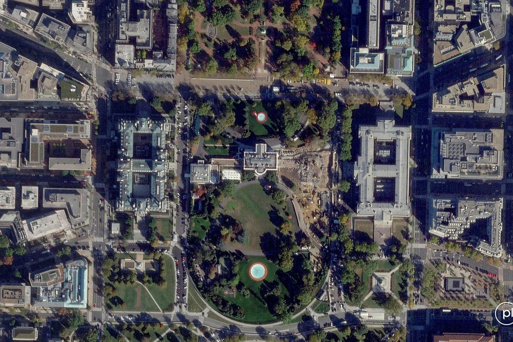 Búið er að rífa niður alla austurálmu Hvíta hússins, bústað Bandaríkjaforseta. Á gervihnattamyndum sést hvernig nær aðeins grunnurinn stendur eftir.