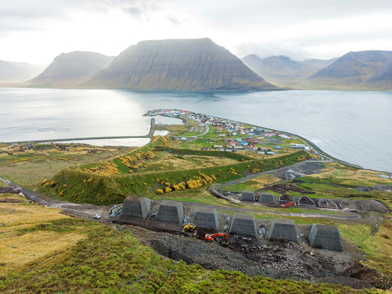 Eftir snjóflóðið sem féll á höfnina og byggðina fyrir fimm árum var ákvörðun tekin um að bæta í ofanflóðavarnirnar og á nú að reisa raðir af tíu metra háum keilum austan og vestan við núverandi garða og byggja leiðigarð við höfnina.