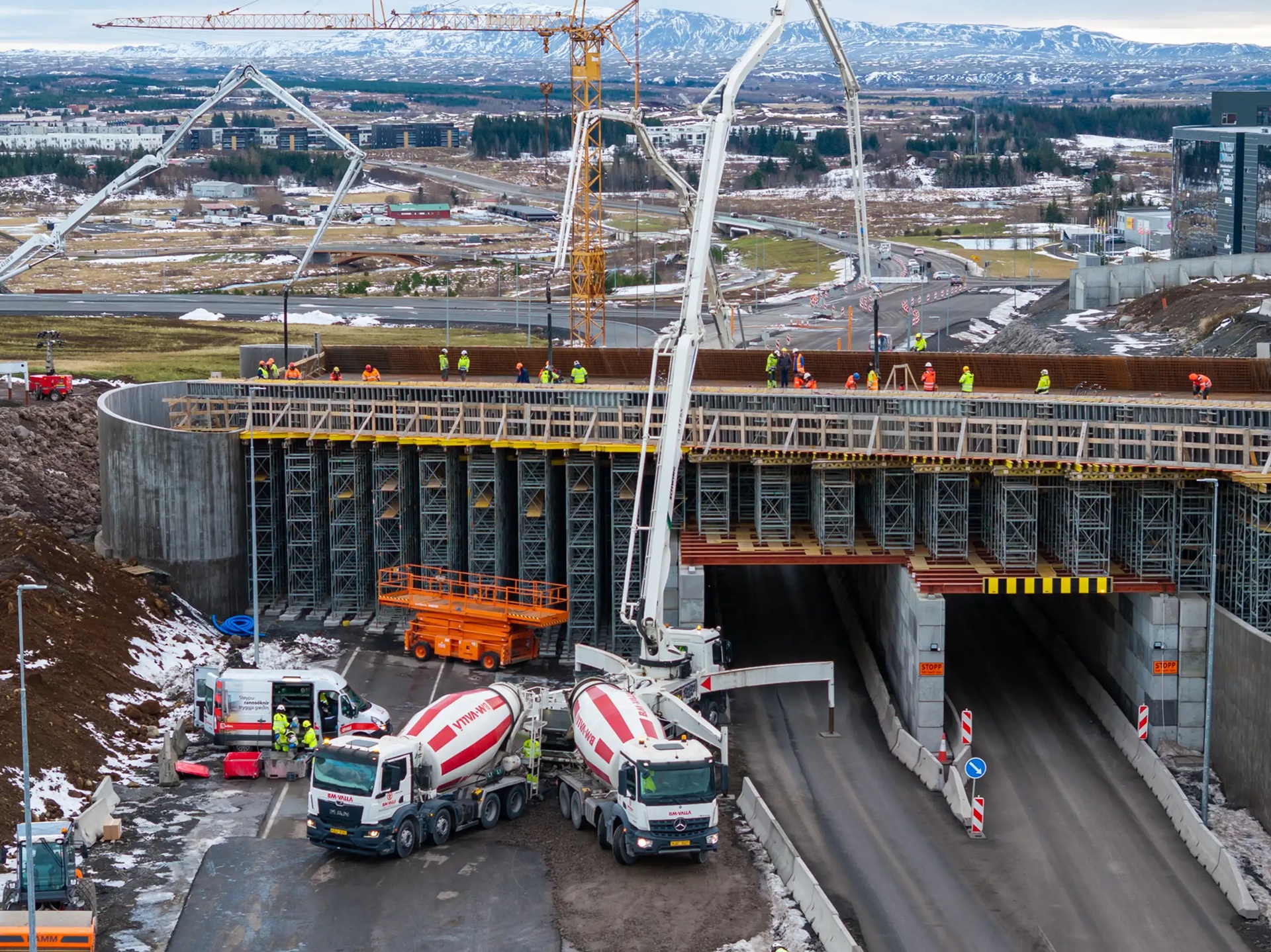 Steypuvinnu við nýja brú yfir Breiðholtsbraut er lokið. Alls fóru 1650 rúmmetrar af steypu í brúna eða sem nemur 205 steypubílum.