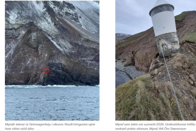 „Í kjölfarið var vitinn skoðaður og skorið úr um að aðeins tímaspursmál væri þar til hann hryndi og lítið hægt að gera til að koma í veg fyrir það.“