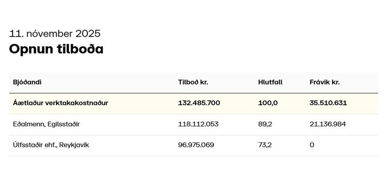 Ekki verður haldinn sérstakur opnunarfundur en eftir lok tilboðsfrests verður bjóðendum tilkynnt um nöfn bjóðenda í útboðinu og heildartilboðsupphæð.