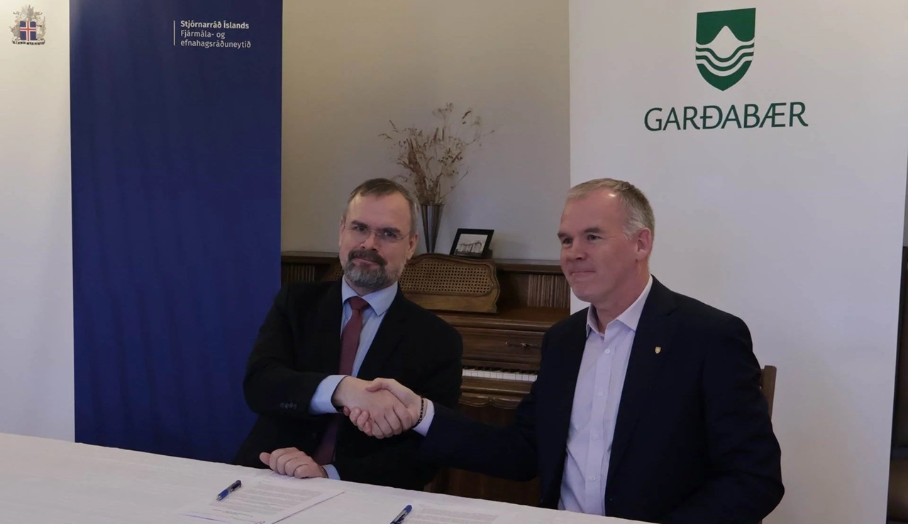 Daði Már Kristófersson og Almar Guðmundsson, bæjarstjóri Garðabæjar, við undirritunina. Ljósmynd: Aðsend mynd