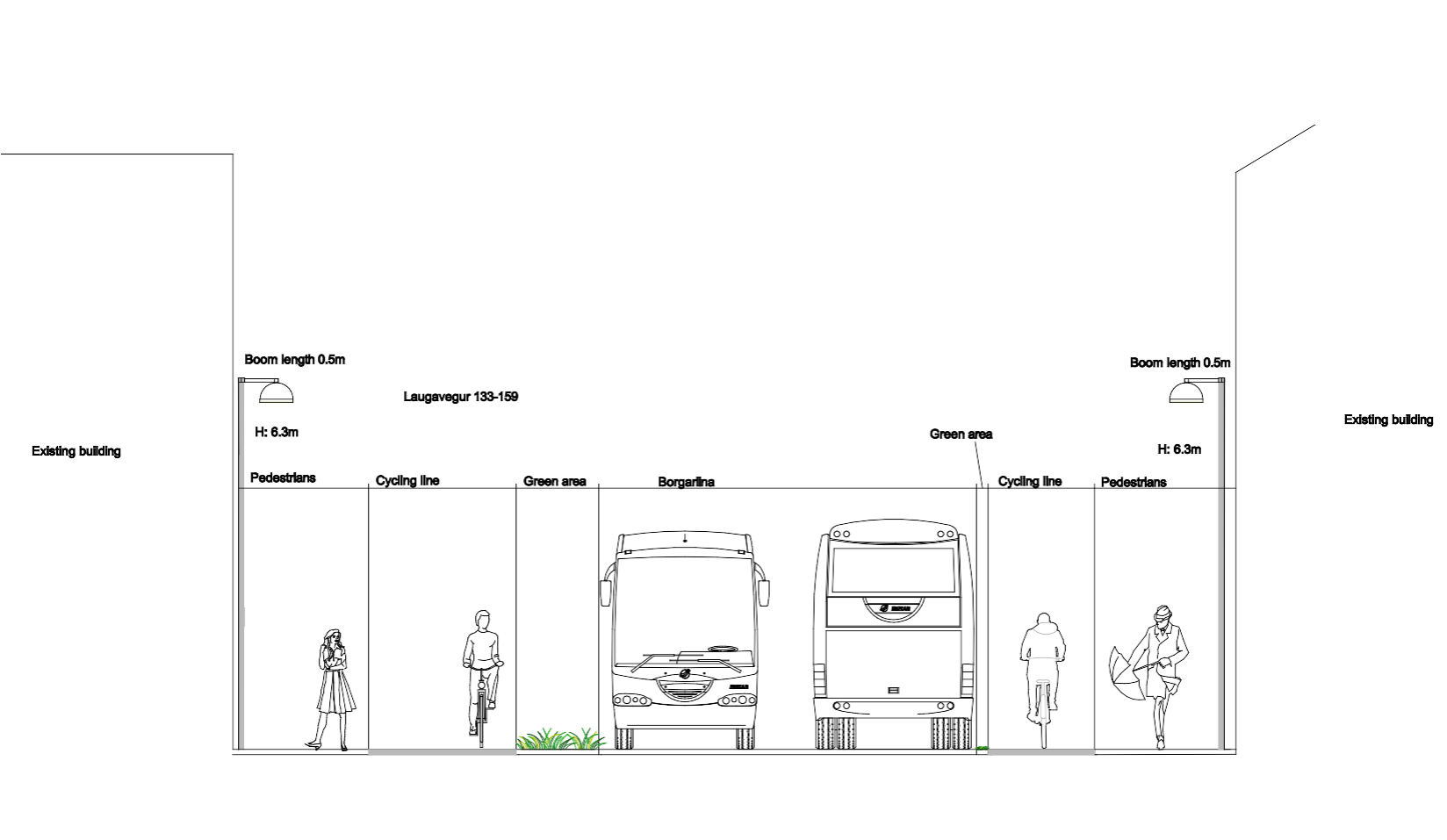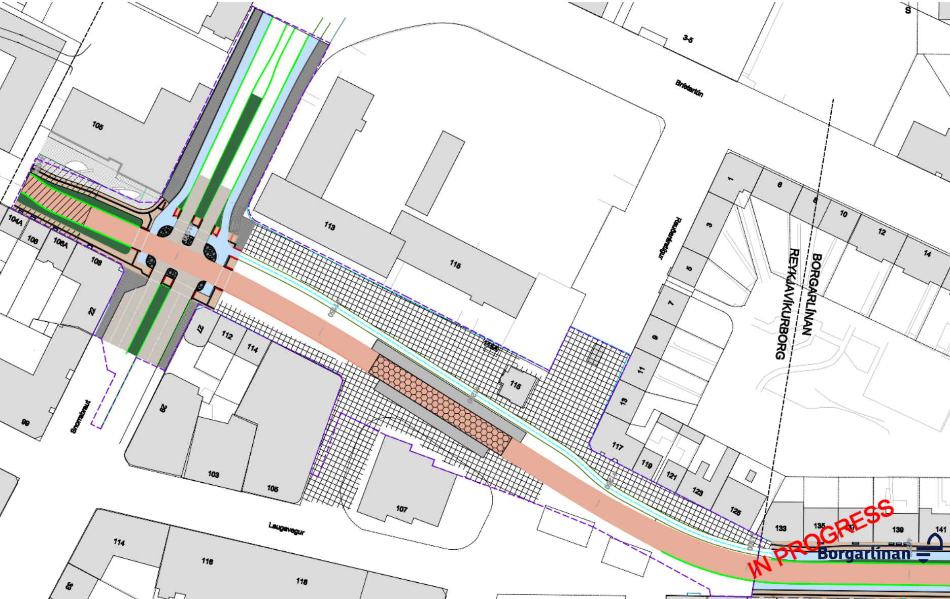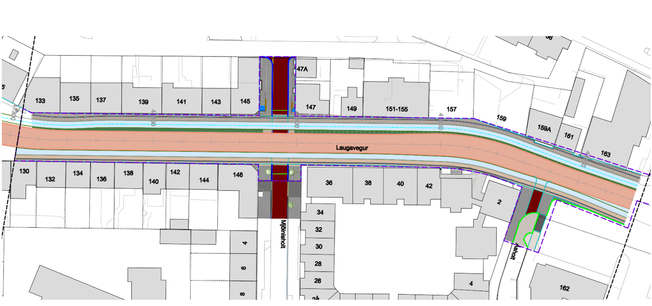 Uppdráttur úr verkhönnun Laugavegar næst Hlemmi.