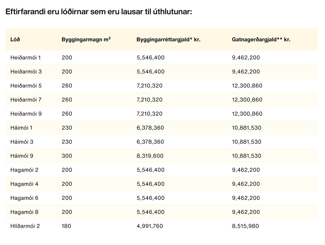 Hér má nálgast úthlutunarskilmála fyrir lóðirnar.