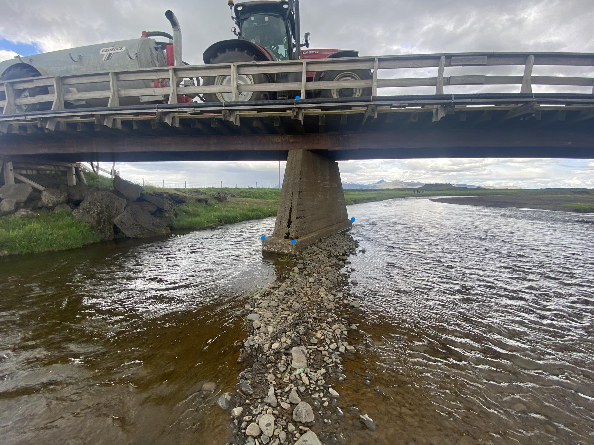 Brúarvinnuflokkur Vegagerðarinnar sá um að reisa nýja steypta endastöpla. Undir þá voru reknir átta 12 m langir, steyptir staurar en stöplarnir eru um 3 metra háir með jarðvegsvængjum. Millistöplar eldri brúarinnar voru endurnýttir.