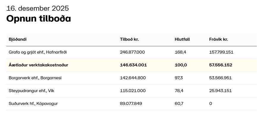 Tilboði skal skila rafrænt í útboðskerfinu fyrir kl. 14:00 þriðjudaginn 16. desember 2025.