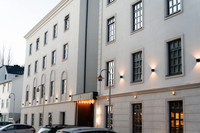 Hafnarstræti 75 á Akureyri er fallegasta nýbygging landsins að mati kjósenda í kosningu Arkitektúruppreisnarinnar. Hún hlaut 39,5% atkvæða í kosningunni. Alls kusu 5.755 í kosningu hreyfingarinnar, þar sem valið stóð á milli fimm bygginga.