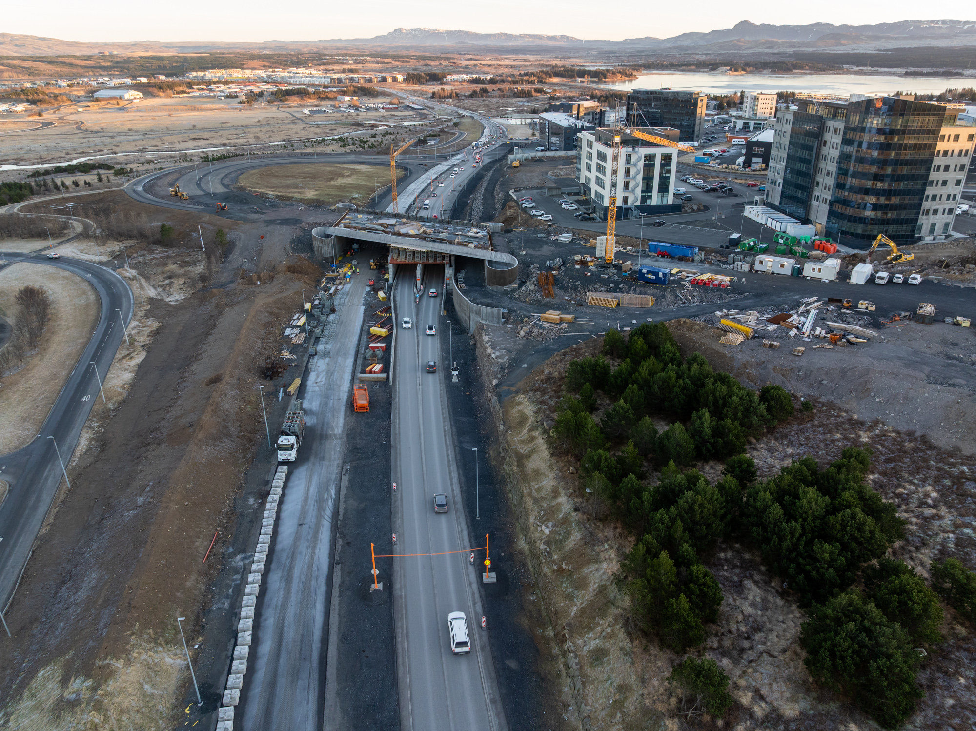 Þessa dagana er unnið að frágangi nýrrar brúar yfir Breiðholtsbraut, sem var steypt í byrjun nóvember. Verið er að fjarlægja undirslátt af akbraut til norðurs, sem hefur verið lokuð frá því í sumar. Ráðgert að færa umferð yfir á akbrautina um næstu mánaðarmót og þá verður hæðartakmörkunum aflétt.