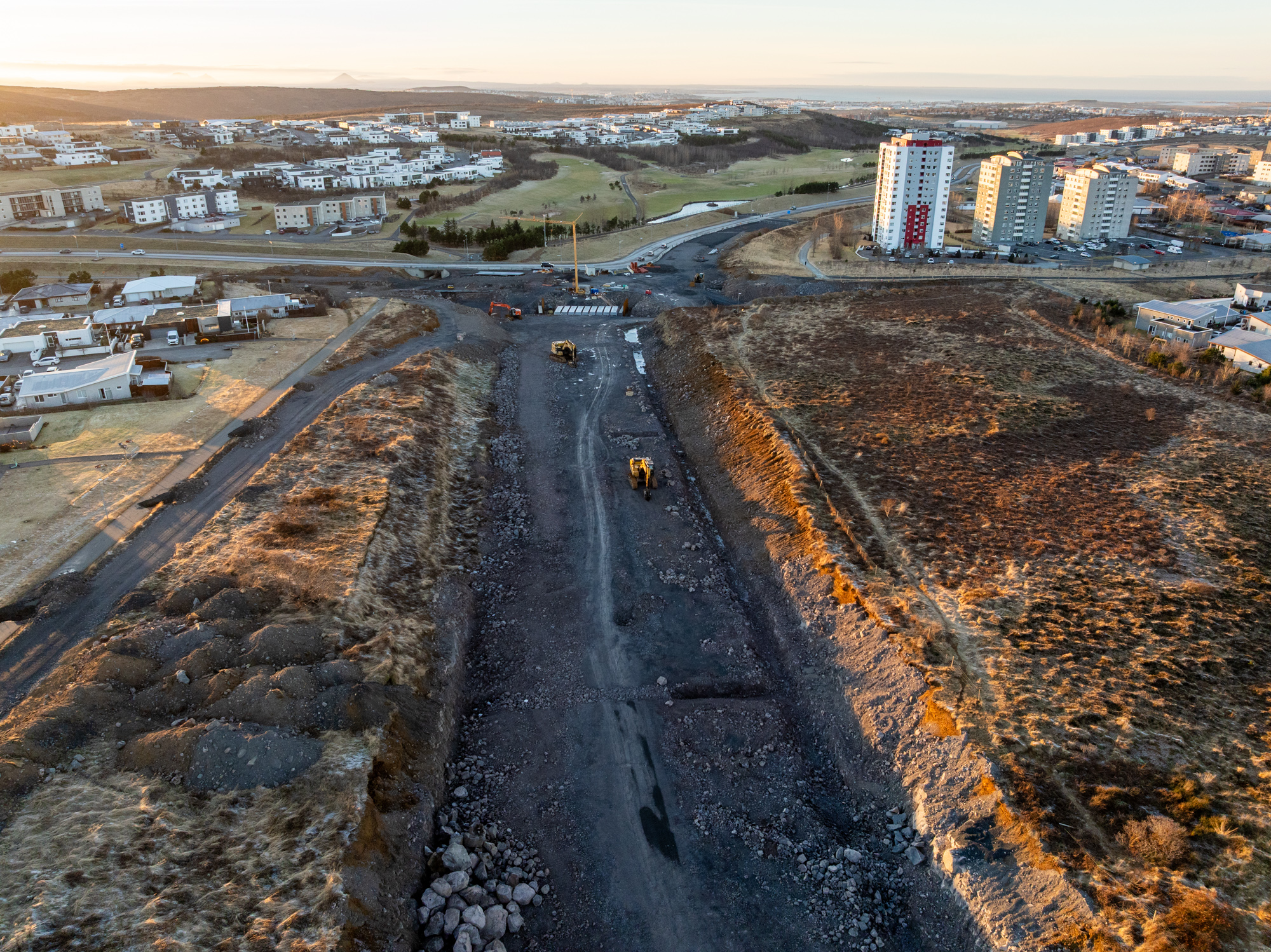 Í vegstæði Arnarnesvegar, milli Breiðholtsbrautar og Rjúpnavegs, er unnið við fyllingar og frágang ofanvatnslagna. Við göngu- og hjólastíg, sem verið er að leggja austan við veginn, er unnið við uppsetningu ljósastaura og frágangi á burðarlagi undir malbik.