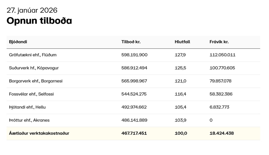 Tilboði skal skila rafrænt í TendSign útboðskerfinu fyrir kl. 14:00 þriðjudaginn 27. janúar 2026.
