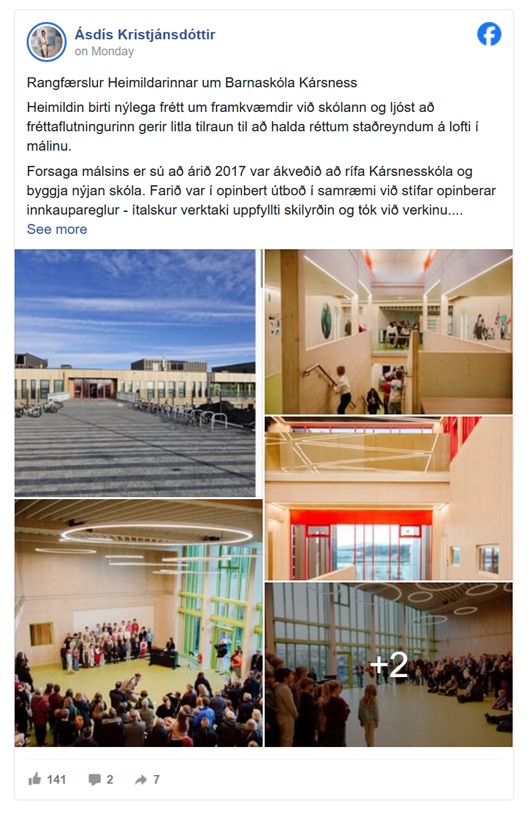„Forsaga málsins er sú að árið 2017 var ákveðið að rífa Kársnesskóla og byggja nýjan skóla. Farið var í opinbert útboð í samræmi við stífar opinberar innkaupareglur – ítalskur verktaki uppfyllti skilyrðin og tók við verkinu.