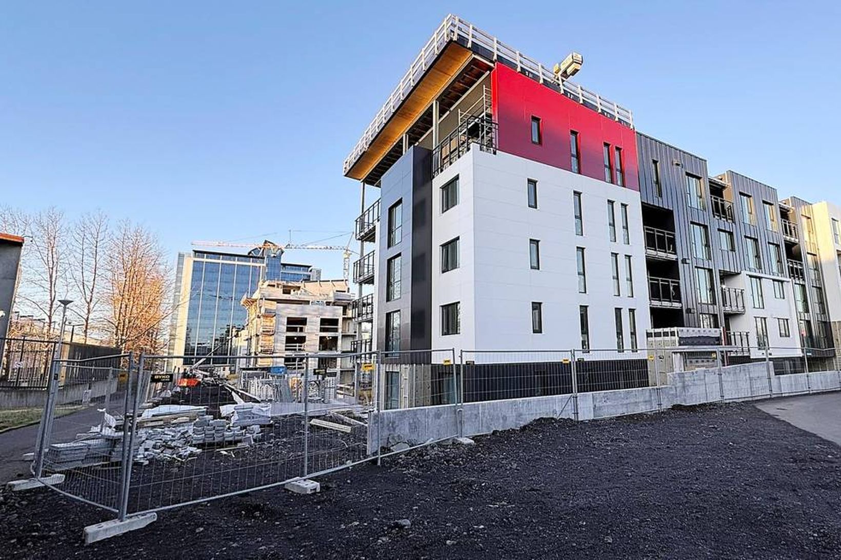 Íbúðir í fjölbýlishúsinu hægra megin á myndinni koma í sölu eftir nokkra mánuði. mbl.is/Baldur