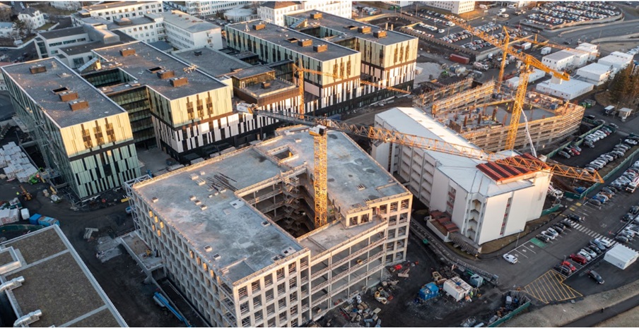 Uppsetning útveggjaeininga hafin í rannsóknahúsi Nýs Landspítala