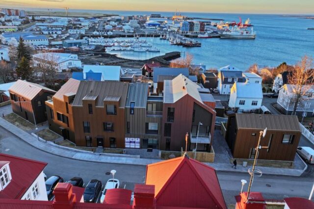 Nýbyggingin á lóð gamla Katóskólans fellur vel að byggð og er með sjávarútsýni. mbl.is/Eggert