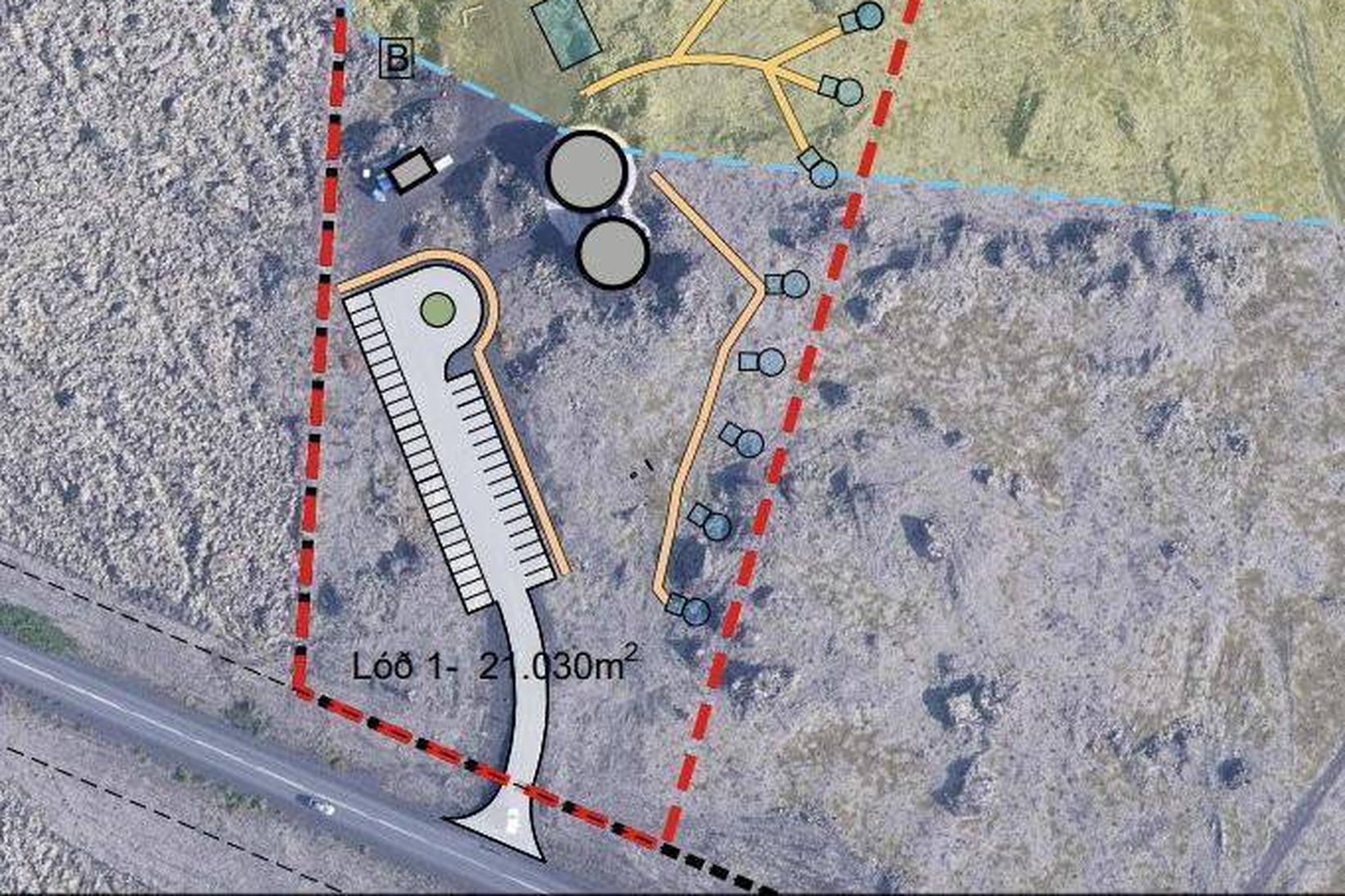 Á þessari teikningu sést möguleg staðsetning kúluhúsanna.