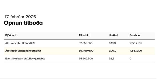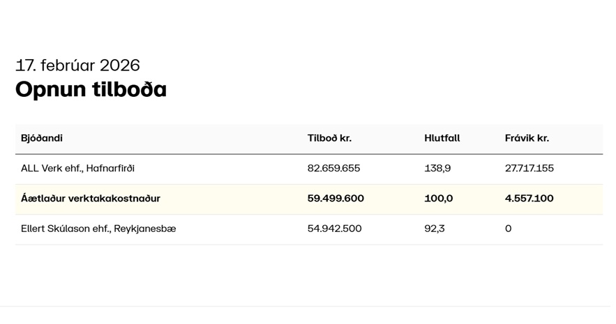 Tilboði skal skila rafrænt í útboðskerfinu TendSign fyrir kl. 14:00 þriðjudaginn 17. febrúar 2026.
