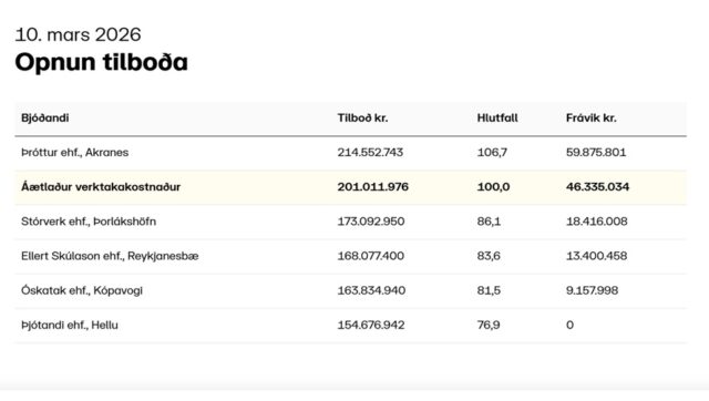 Ekki verður haldinn sérstakur opnunarfundur en eftir lok tilboðsfrests verður bjóðendum tilkynnt um nöfn bjóðenda og heildartilboðsupphæð.