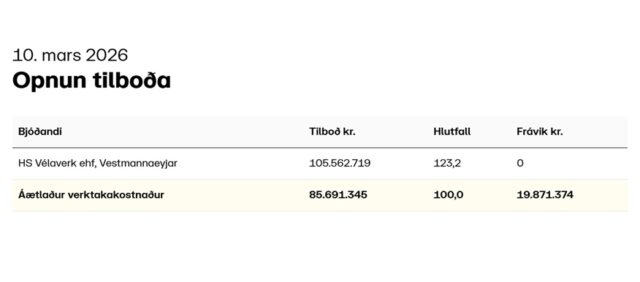 Home Fréttir Í fréttum Opnun útboðs: Vest­manna­eyjar – Gjábakki þekja og lagn­ir 2026