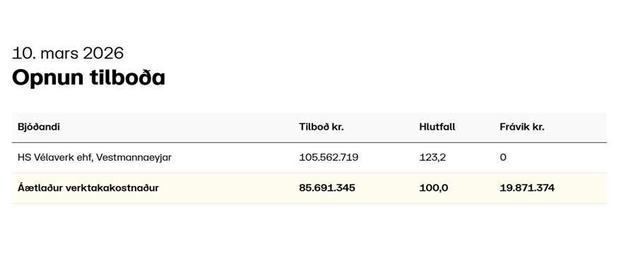Hafnarstjórn Vestmannaeyjabæjar óskar eftir tilboðum í verkið „Vestmannaeyjar – Gjábakki, þekja og lagnir 2026“.