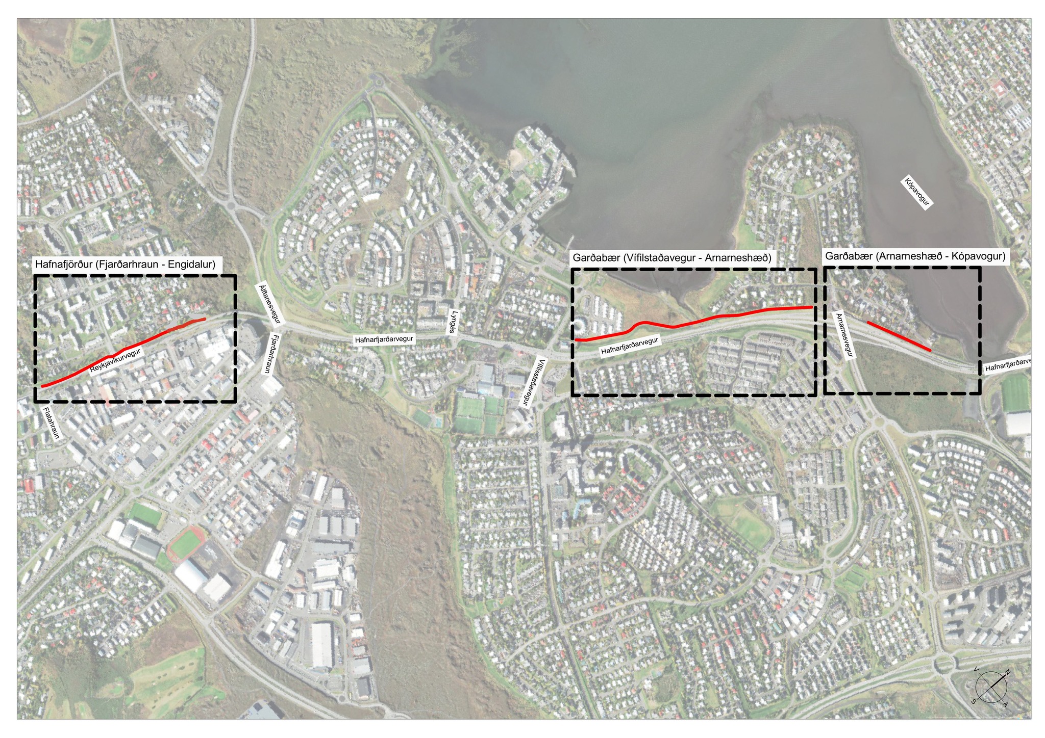 Framkvæmdin felst í gerð göngu- og hjólastíga ásamt stígalýsingu, nýjum skiltum og merkingum á tveimur framkvæmdarsvæðum. Annars vegar í Garðabæ, meðfram Hafnarfjarðarvegi frá Álftanesvegi að Breiðási, og hins vegar í Kópavogi, frá sveitarfélagsmörkum Garðabæjar og Kópavogs, meðfram Hafnarfjarðarvegi að núverandi undirgöngum fyrir gangandi og hjólandi undir Hafnafjarðarveg við Kópavogstún.