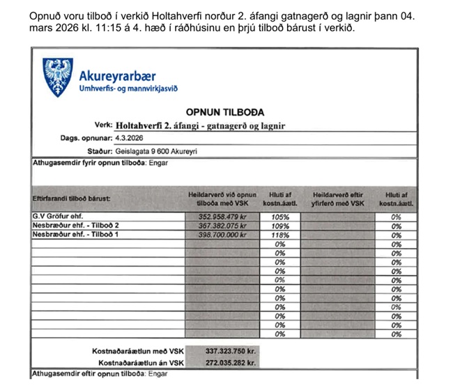 Úr fundargerð Umhverfis- og mannvirkjaráðs Akureyrarbæjar þann 10.03.2026