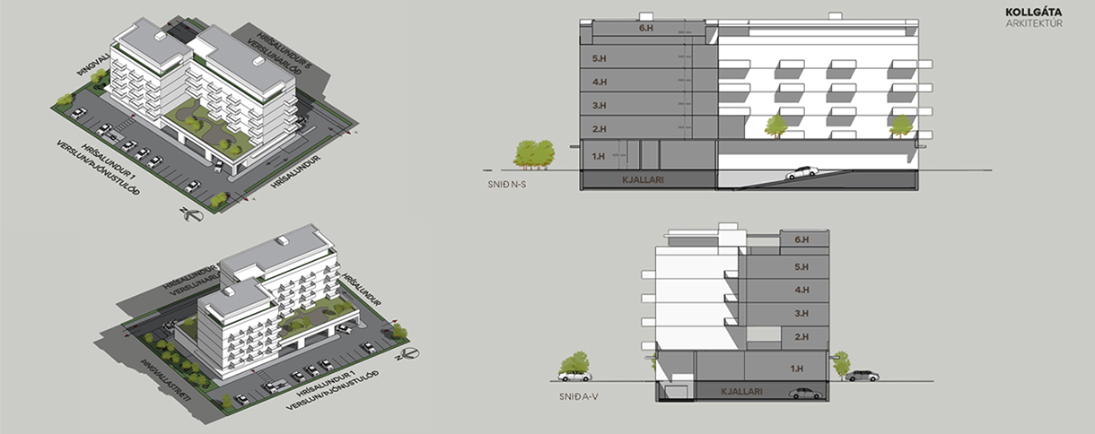 Frumgreining og tillaga Kollgátu er að þróa skipulag fyrir lóðina sem gerir ráð fyrir eftirfarandi þáttum: