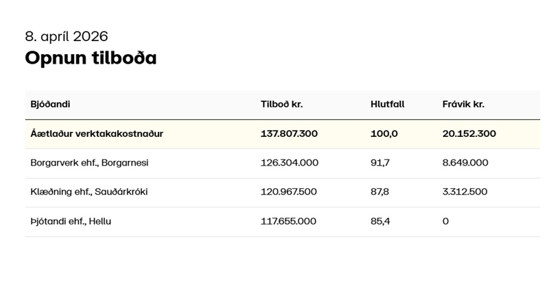 Tilboðum skilað rafrænt í því útboðskerfi fyrir kl. 14:00 þriðjudaginn 7. apríl 2026.