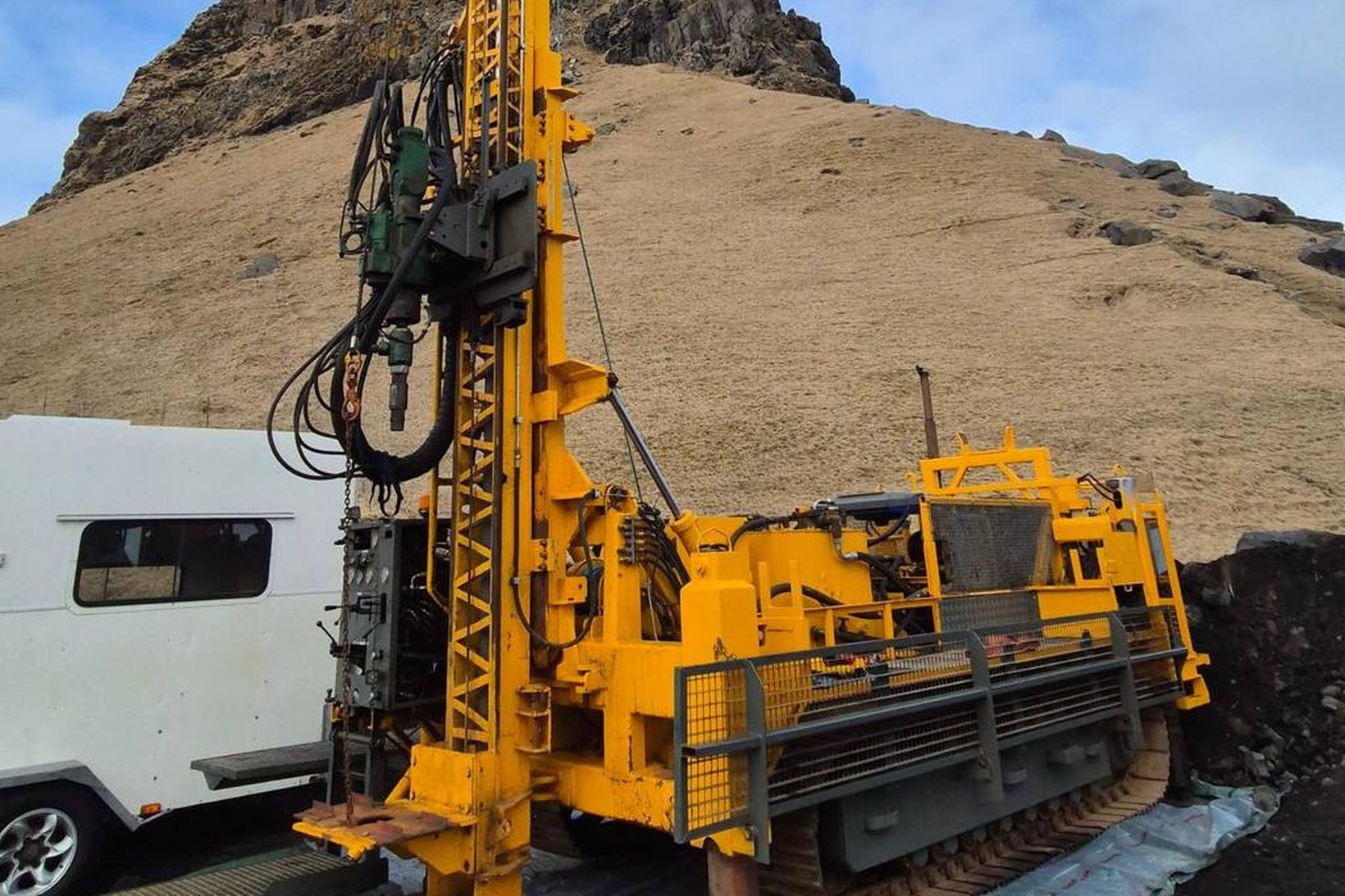 „Við hefjum borunina í dag eða á morgun og reiknum með að bora hér í Eyjum í einn mánuð, tökum kjarna og greinum þá. Að því loknu flytjum við borinn á Landeyjasand og tökum kjarna þar,“ segir Haraldur Pálsson framkvæmdastjóri Eyjaganga um rannsóknarboranir vegna fyrirhugaðra jarðganga milli lands og Vestmannaeyja.